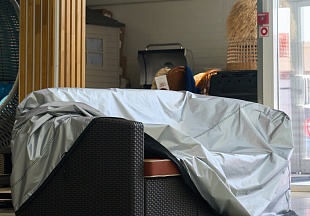 При одевании чехла лучше добиваться натяжения ткани, чтобы вода скатывлась. Но даже если натяжение ослабнет и образуются углубления, где будет скапливаться вода, водонепроницаемая мембрана не пропускает воду, а через швы ей не даст просочиться гидроизоляционный скотч. Теперь не надо постоянно убирать подушки с кресел!