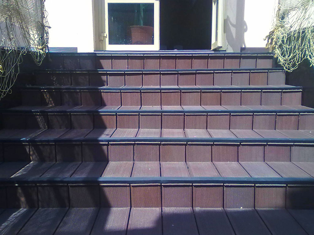 Хороший и практичный выбор, застелить дорожки и тропинки террасной доской. Ведь она невероятно устойчива и крепка, и готова прослужить долгую службу не испортив свой внешний вид. Крепкая и надежная, она устойчива к перепадам температур и высокой влажности. Не намокает и не гниет и не интересна насекомым. В связи со своей структурой, она не скользит и на ней не скапливается вода, не создавая влажной подушки. что благотворно влияет на её состояние и антискольжение. Отличное решение для мест с повышенной проходимостью!